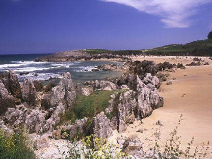 The beach is classified as semi natural and is situated close to Llanes in a semi residential area. It has excellent acess, from Llanes via the road which goes up to Cué. There are car parks and a wide variety of services such as life guards and a Red Cross post as well as a beach cleaning service, showers, foot baths, toilets, a drinking water fountain, waste bins, telephones, a coastal walkway and pedestrian footpaths. There is hotel accommodation, both seasonal and all year round as well as a campsite nearby. There are also toilets and showers for the disabled.