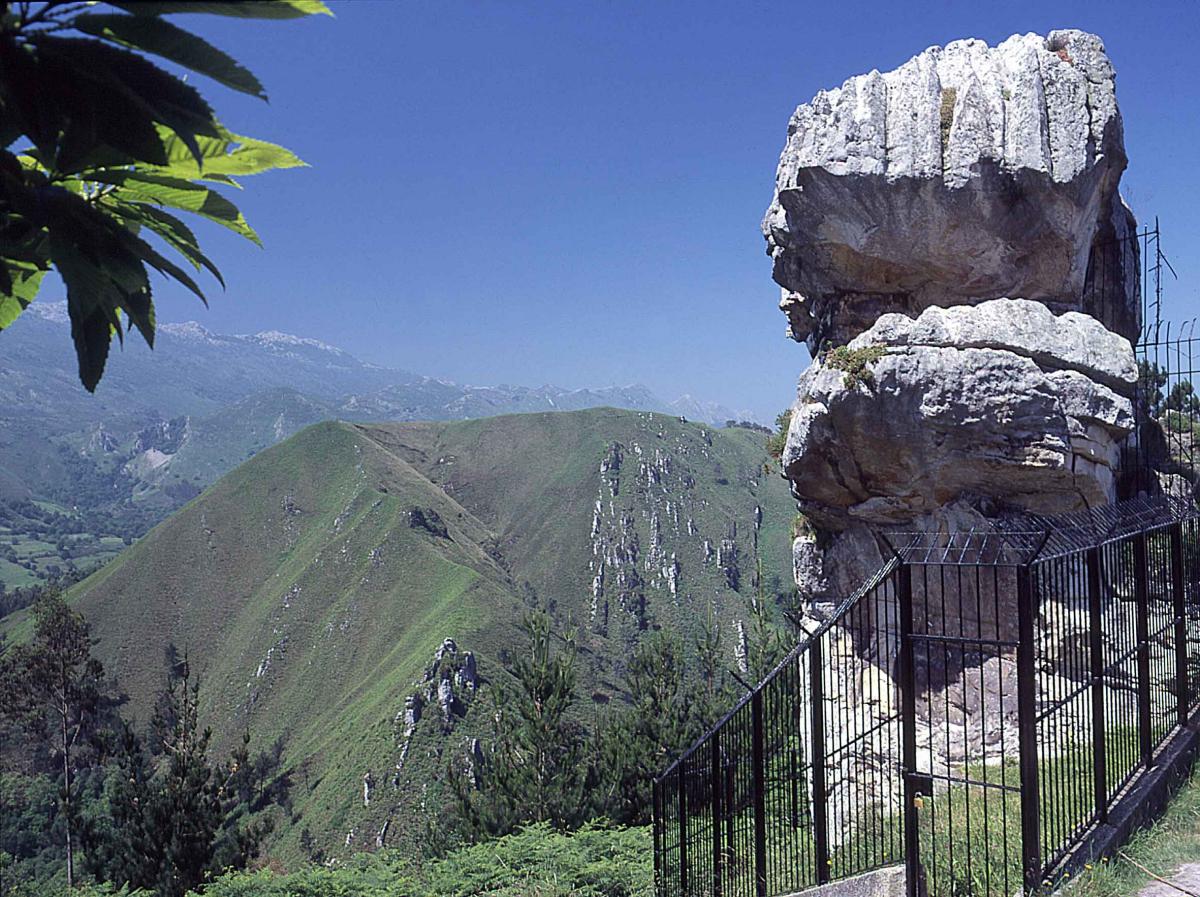 This national monument is located in the village of Puertas de Vidiago. It is a huge rock on whose sides there are paintings and carvings belonging to the Neolithic Age. There are various schematic figures and groups of dots . There are a large number of burial mounds nearby, some with funerary chambers inside. Even today, the reasons for the presence of this Neolithic enclave is a source of debate amongst students of pre history. Numerous theories have been expounded, the most well founded of which is that the rock represents a funeral monument.