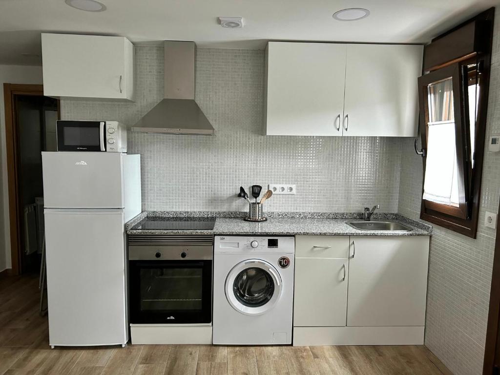 Ambos espacios están diseñados para estancias funcionales, con cocinas completamente equipadas y zonas comunes amplias. “El Texu” es un apartamento de estilo vanguardista que fusiona un diseño moderno con una distribución cómoda y luminosa. Su salón, que incluye un sofá cama amplio, destaca por la claridad que aportan sus grandes ventanales.