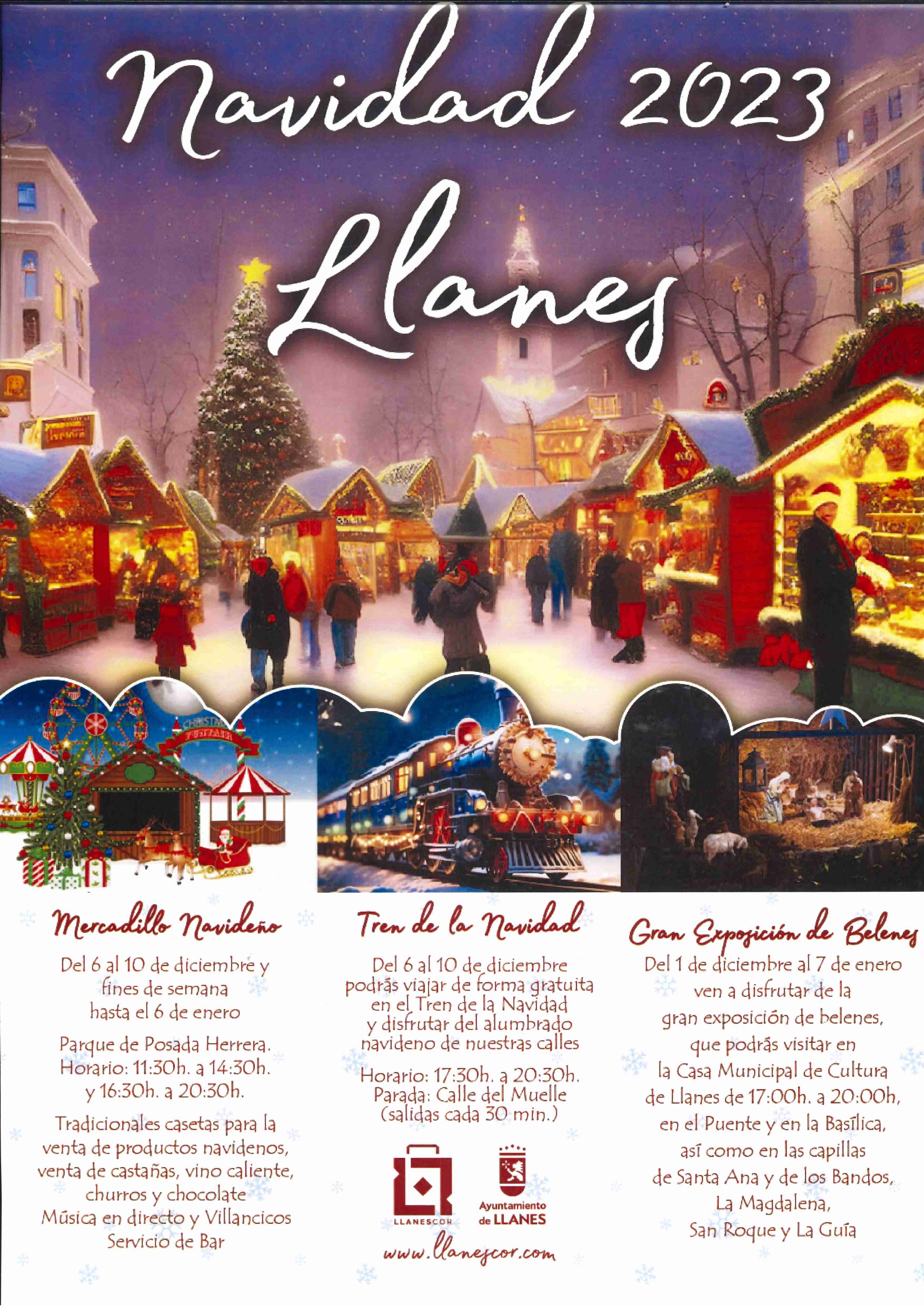 El recorrido termina con el tradicional belén del puente de la villa que se recupera después de que el año pasado no se instalara. La escena, que cuenta con numerosas figuras de estilo clásico, se encuentra ubicada en una caseta de madera junto a la emblemática menina llanisca y frente a un gran árbol de Navidad