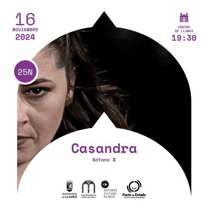Casandra, princesa de Troya, es inteligente e intuitiva. Posee una profunda y lúcida capacidad de análisis, y eso le permite vaticinar acontecimientos y comportamientos de un modo certero. Pero nadie la escucha. Sus palabras son ignoradas una y otra vez, aunque demuestre tener razón. Una y otra vez. Casandra no se rinde, se niega a asumir el rol complaciente y sumiso que de ella se espera como mujer y se enfrenta a la ceguera de una sociedad patriarcal condenada a repetir sus errores. Y de fondo la más famosa y épica de las guerras: Troya. A través del relato de Casandra veremos sobre la escena personajes míticos: Héctor, Aquiles, Príamo, Hécuba, Helena, Paris... pero relatados y encarnados desde una perspectiva no escrita por vencedores, una perspectiva de mujer. La pregunta que planea sobre las palabras de Casandra es ¿podemos aprender, como individuos y como sociedad, de nuestros errores, o seguimos condenados a repetirlos? La respuesta... escuchen a Casandra.