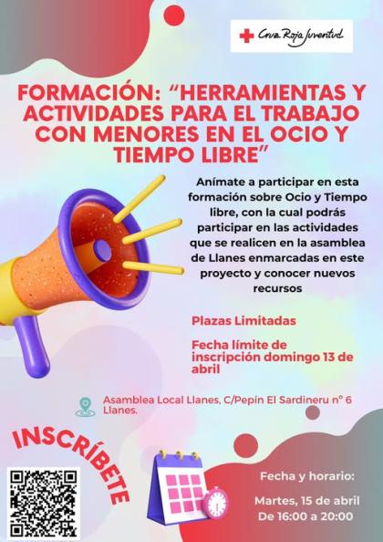 Si estás interesado en realizar actividades con Infancia y Adolescencia, no puedes perderte la formación del Proyecto de Ocio y Tiempo Libre de Cruz Roja Llanes que se desarrollará el martes 15 de abril en la Asamblea Local de Cruz Roja Llanes (C/ Pepín El Sardineru nº 6), en horario de 16:00h a 20:00h.