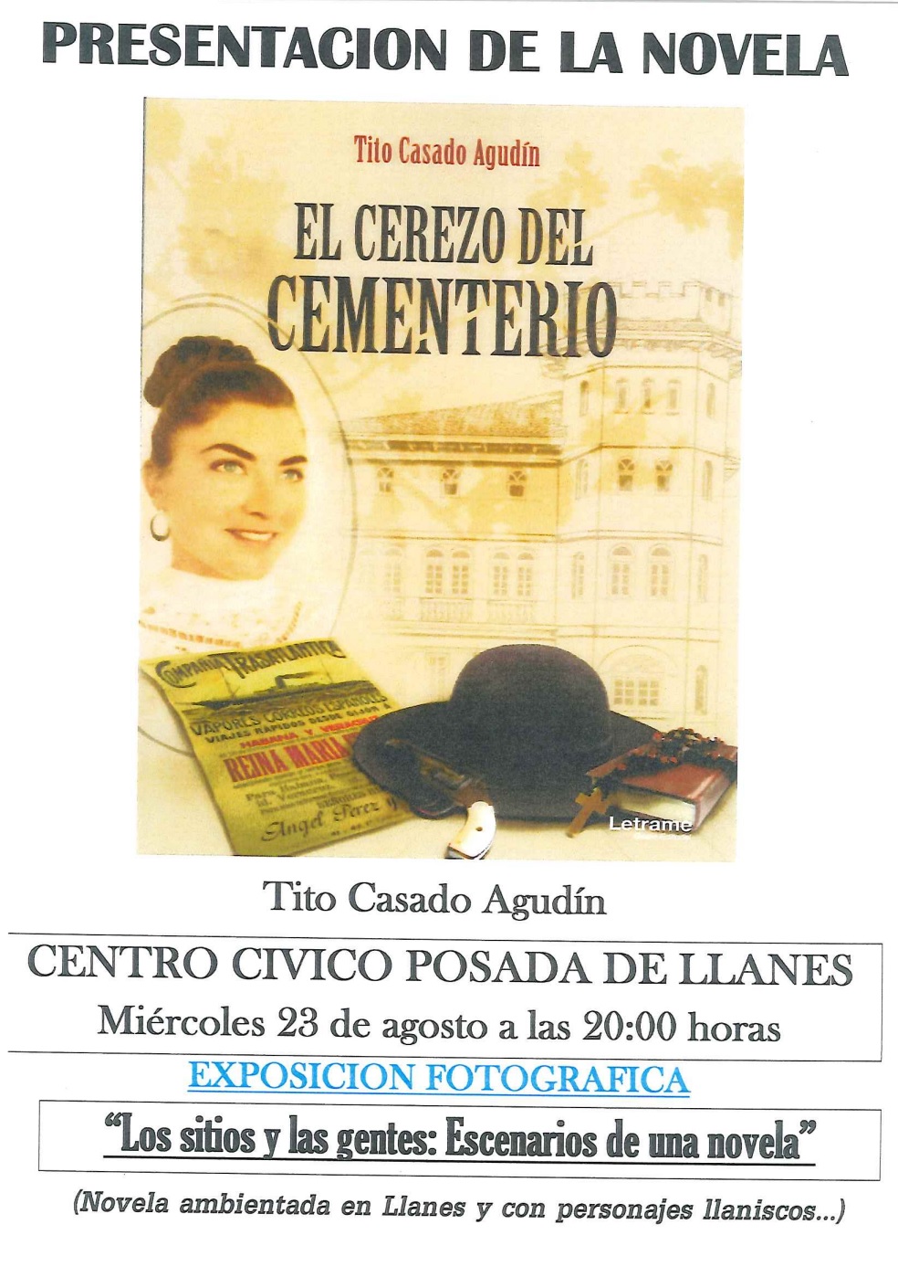 El miércoles 23 de agosto, el Centro Cívico de Posada de Llanes acoge la presentación de la novela de Tito Casado Agudín “El cerezo del cementerio”.