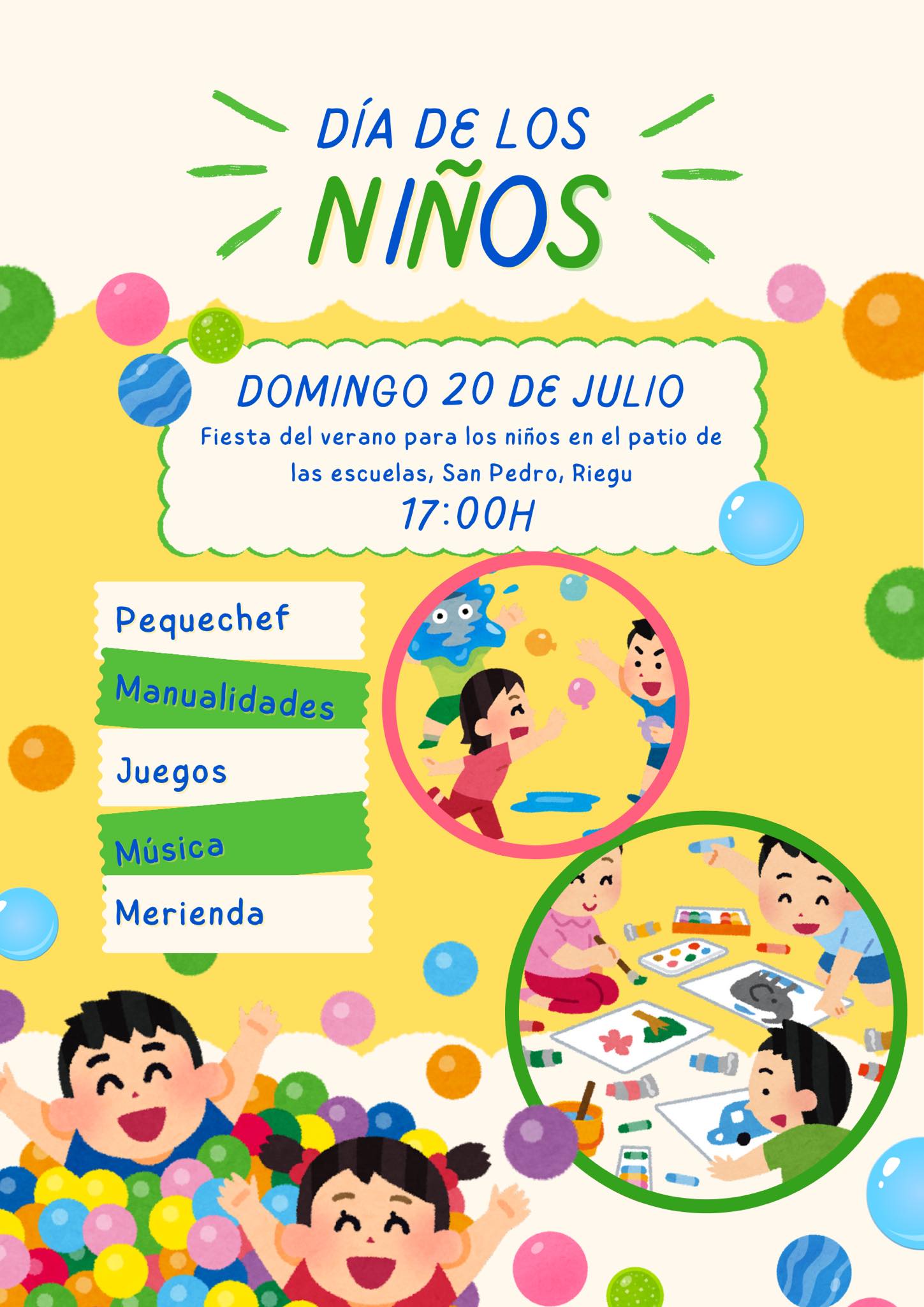 Pequechef, manualidades, juegos, música, merienda .....