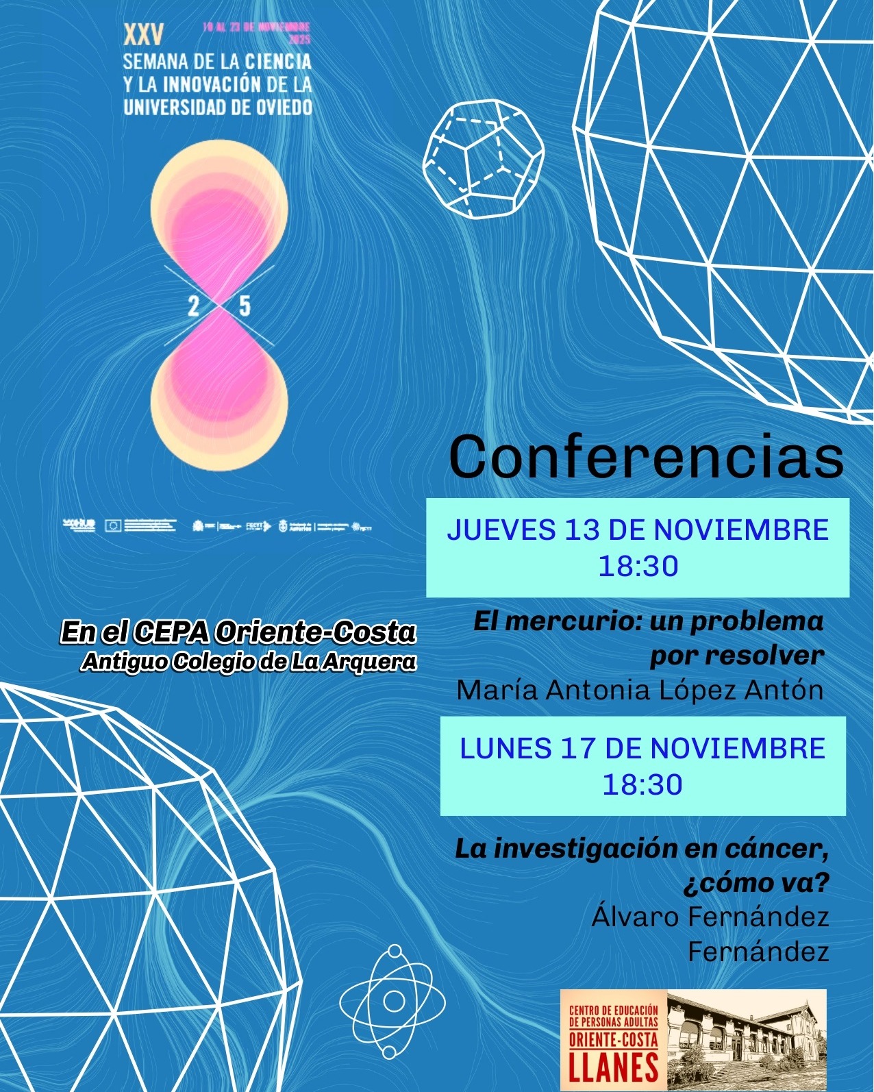 El Centro de Educación de Personas Adultas (Antiguo Colegio de La Arquera) acogerá el jueves 13 y lunes 17 de noviembre dos conferencias de divulgación científica.