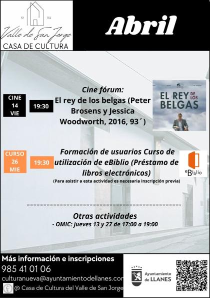 - VIERNES 14 a las 19:30; CINE FÓRUM; Proyección de la película "El rey de los belgas" (Peter Brosens y Jessica Woodworth, 2016, 93´).