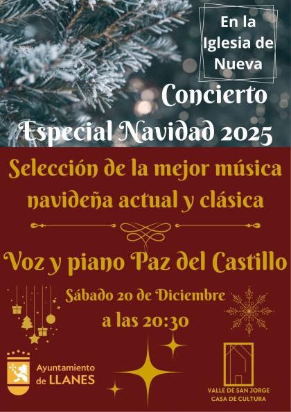 SÁBADO 20 a las 20:30; CONCIERTO ESPECIAL NAVIDAD 2025 EN LA IGLESIA DE NUEVA; Voz y piano Paz del Castillo