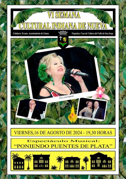 “Poniendo puentes de plata” es el espectáculo que Feli Naveiras nos ha preparado para esta IV Semana Indiana, la acompañaran el afamado pianista Sigfrido Cecchini y los cantantes Ana Suárez y Alberto Labrada.