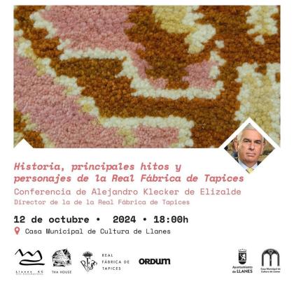 El sábado 12 de octubre a las 18:00 h. en la Casa Municipal de Cultura de Llanes, podremos disfrutar de una conferencia de Alejandro Klecker de Elizalde, director de la Real Fábrica de Tapices bajo el título “Historia, principales hitos y personajes de la Real Fábrica de Tapices”.
