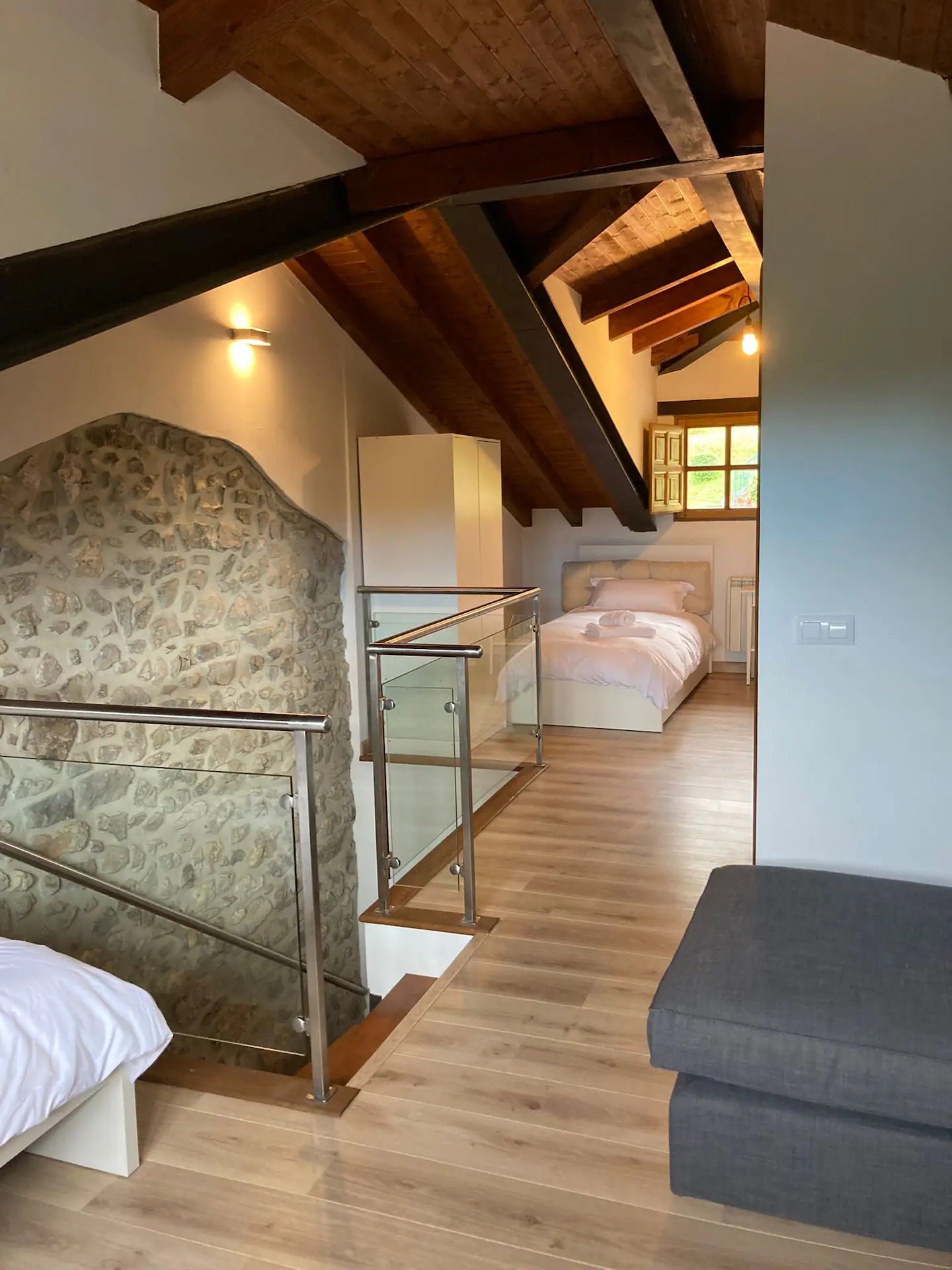 Casa La Portilla es una vivienda recién reformada, con excelente ubicación situada a apenas 10 min caminando del centro de Llanes. La casa está distribuida en 3 plantas y cuenta con 2 habitaciones dobles, 1 con cama matrimonial y otra con camas individuales. Su amplio desván funciona como una habitación más y cuenta con camas individuales y pequeña área de estar. El salón-comedor dispone de sofá-cama y cocina estilo americano. Cuenta con 2 baños independientes y aseo con lavadora.