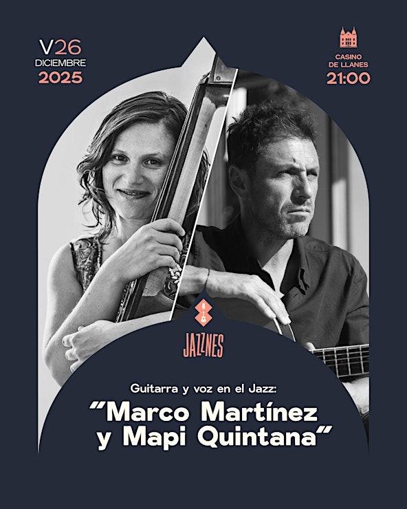 21:00 h. - Casino de Llanes: “Marco Martínez y Mapi Quintana”. Guitarra y voz en el Jazz.