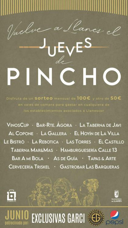 Vuelve a Llanes el "jueves de pincho" y además todos los meses se realizará un sorteo de 100 € en vales de compra, entre los asistentes. No olvides solicitar la papeleta con cada consumición y rellenarla para el sorteo!
