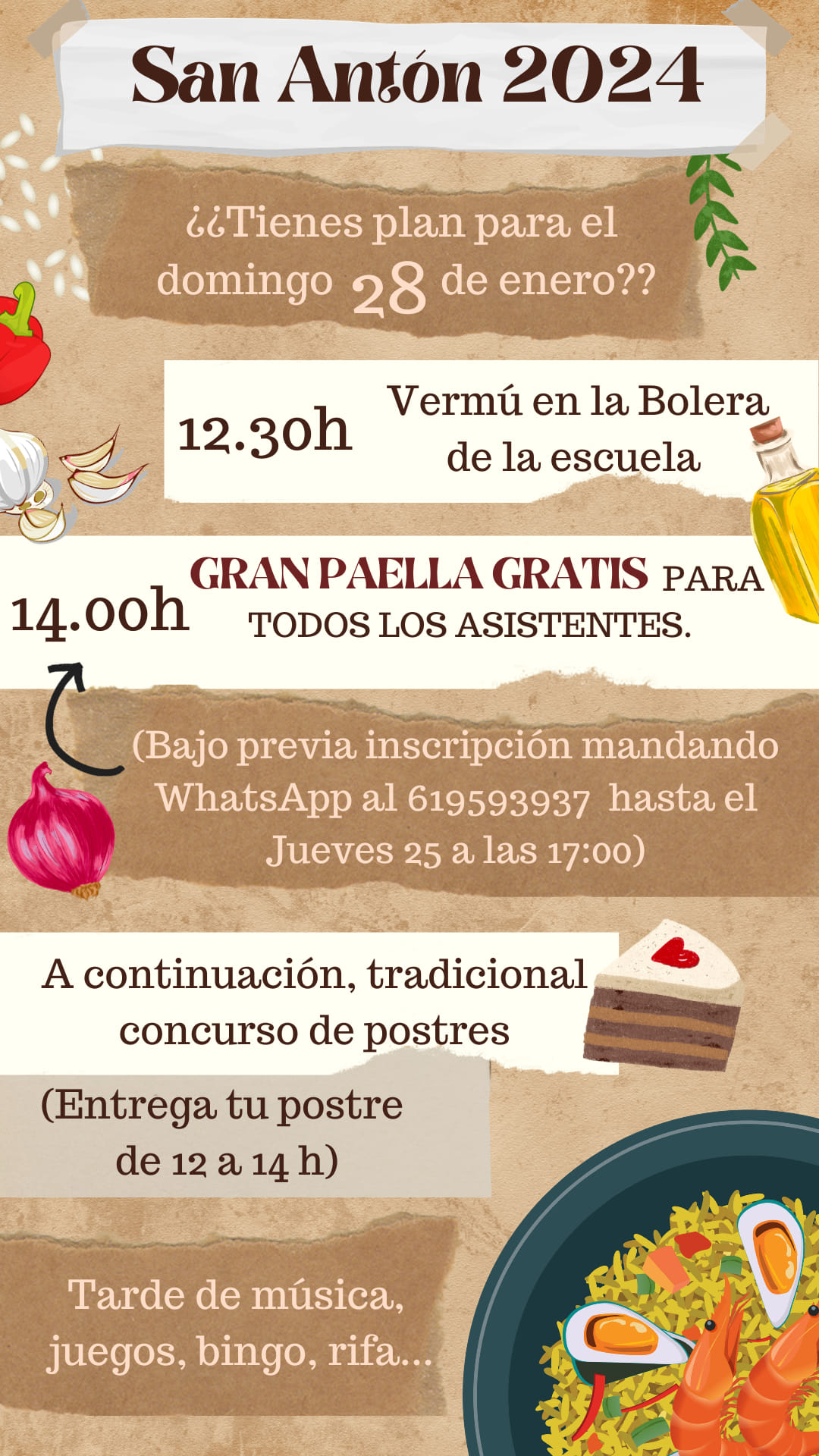 A las 14:00h. Gran paella gratis para todos los asistentes, MUY IMPORTANTE: bajo previa inscripción mandando whatsapp al 619 59 39 37 hasta el jueves 25 a las 17:00h.
