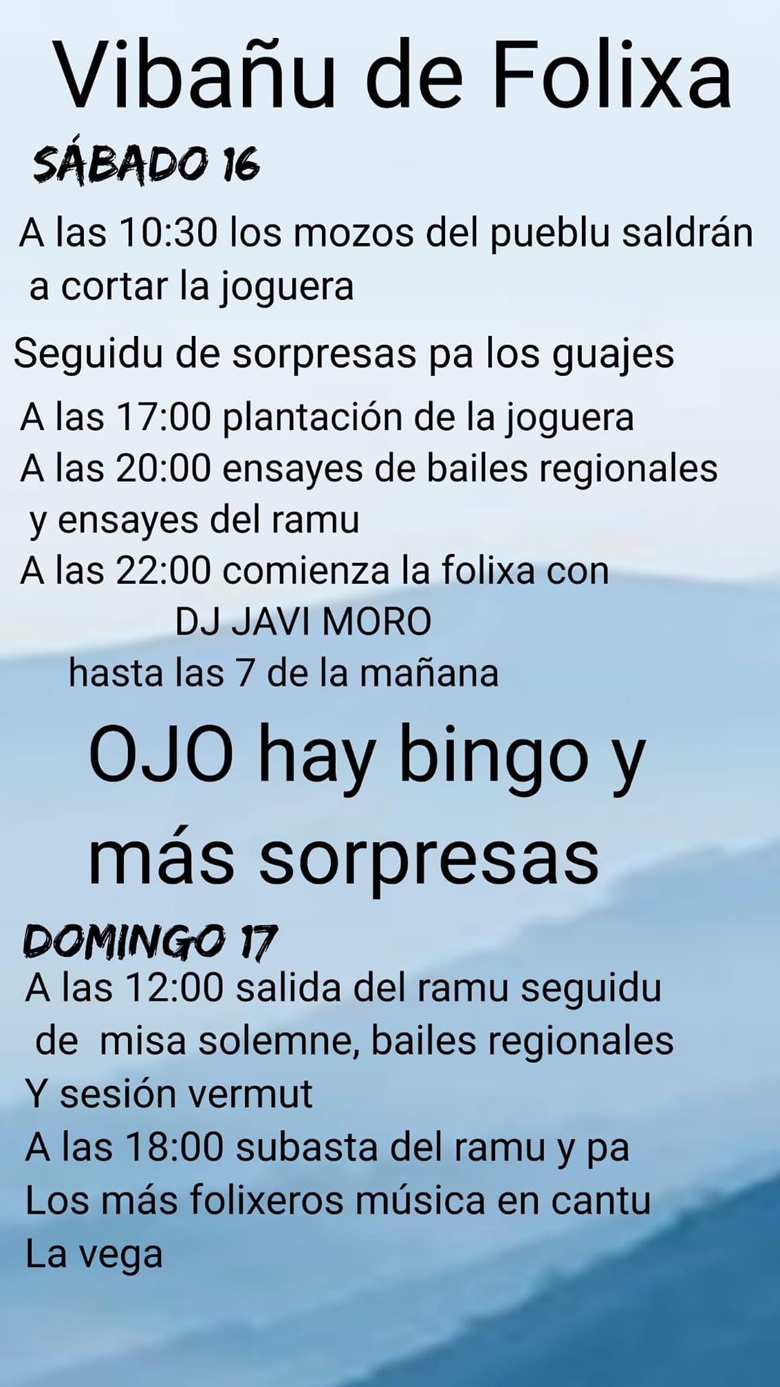 A las 18:00 subasta del ramu y pa los más folixeros música en cantu La Vega.