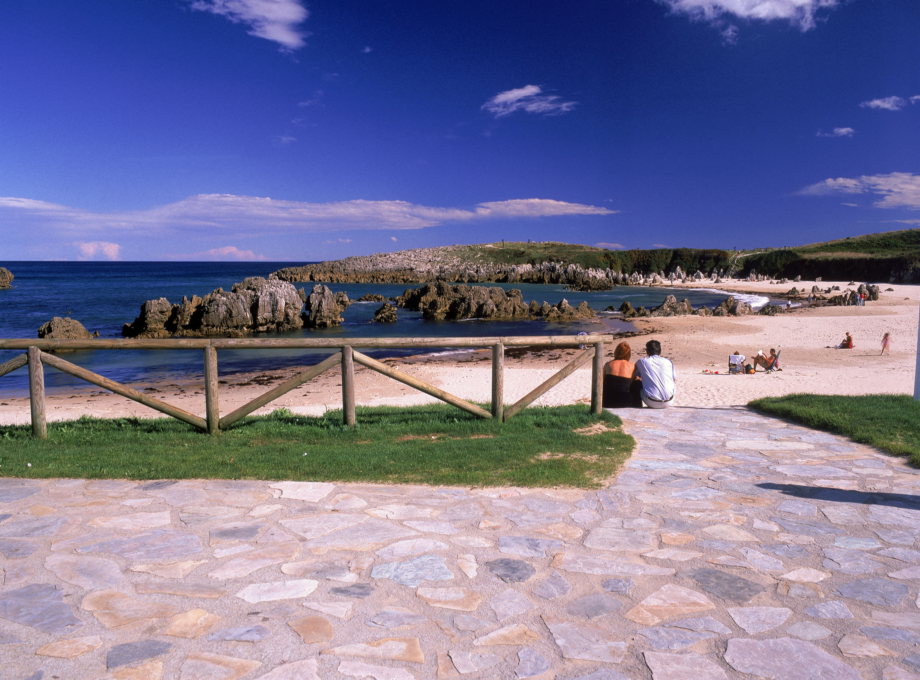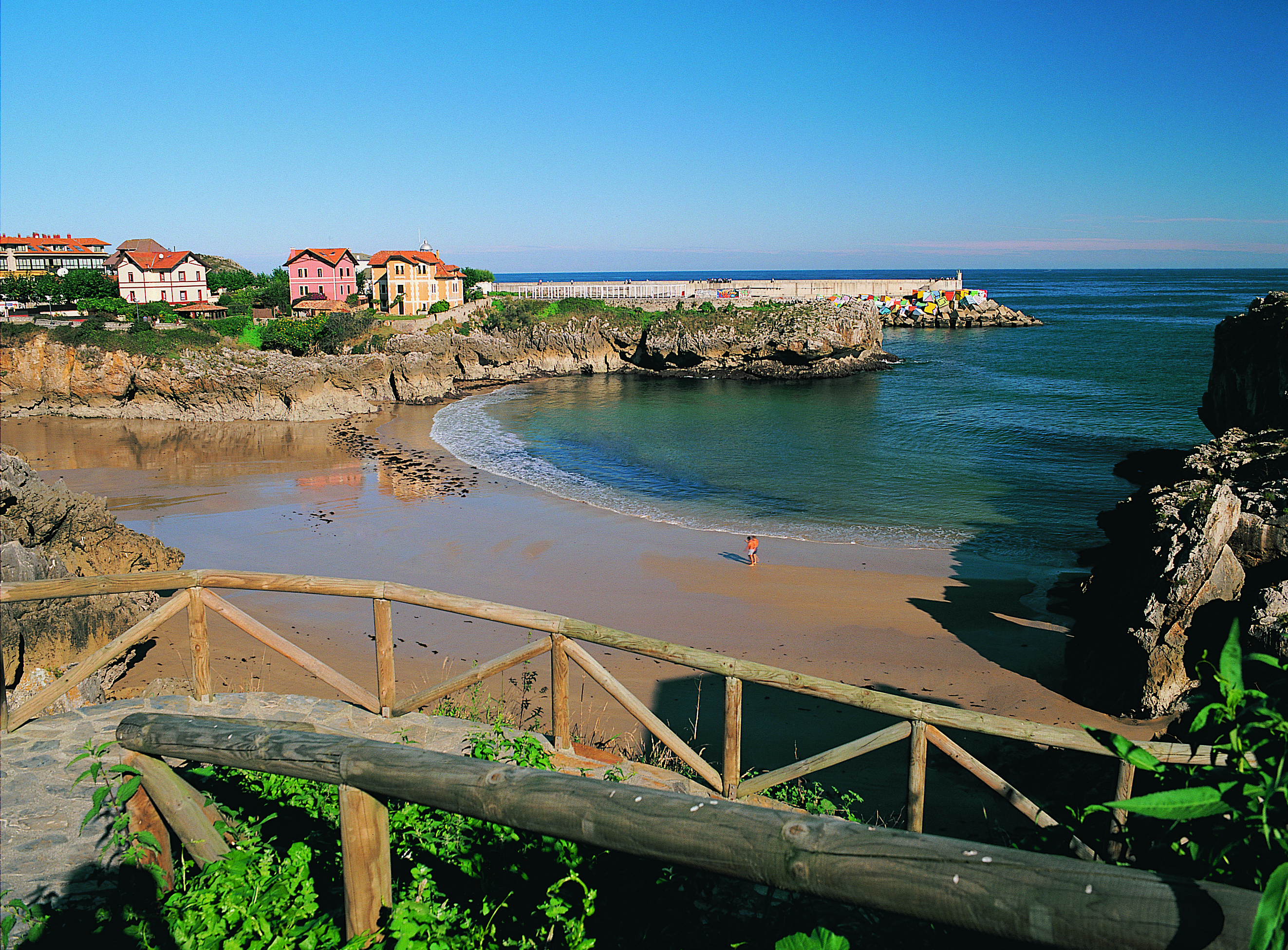 Comenzamos la ruta en el Paseo de San Pedro. El Paseo data de 1847, se trata de un paseo de césped natural sobre acantilados que permite disfrutar de una magnífica vista de la Villa de Llanes, la costa, y los montes de la Sierra del Cuera al Sur, también se encuentra en el recorrido Llanes de Cine, ya que aquí se rodó la película “historia de un beso”. Hace siglos, su privilegiada situación hizo que sirviera como punto de oteo para divisar el paso de las ballenas en el horizonte y la posible llegada de barcos de piratas o corsarios a la Villa. Descenderemos del Paseo hacia la Playa del Sablón. Aquí podremos escoger entre el recorrido adaptado que atraviesa el Casco Histórico, o el que bordea el puerto. En el Casco Histórico entraremos pasando junto a la Muralla (S.XIII). Las Murallas rodeaban Llanes en su totalidad, actualmente se conserva esta zona Norte. Pasando por detrás de la Basílica, a la derecha, podremos ver las ruinas del Palacio Duque de Estrada , que permanece así desde la invasión napoleónica a comienzos del S.XIX. Al fondo se encuentra también la Torre, Torreón de defensa del S.XIII, que estaba unido a la muralla. A la derecha de la Basílica se encuentra el Palacio de Posada Herrera (S.XVII-XVIII), hoy convertido en Casa Municipal de Cultura. Nos situaremos frente a la Basílica de Santa María del Concejo, levantada entre los S.XIII y XV, y en cuyo interior hay un hermosísimo retablo plateresco. Tomando dirección hacia la Calle Mayor abandonaremos el Casco Histórico por el mismo lugar en el que se encontraba una de sus puertas de acceso y nos dirigiremos hacia al puente, en el centro de Llanes. Si optamos por el recorrido bordeando el puerto, llegaremos al puente tras pasar junto al Fuerte, lugar desde el que se defendía la Villa de los ataques de piratas y corsarios, La Lonja de Pescado, el puerto pesquero, los Cubos de la Memoria, obra del artista vasco Agustín Ibarrola, y el puerto deportivo. Al otro lado del puente nos dirigiremos atravesando el Paseo de las Marismas por detrás de la antigua Aula del Mar (ahora Espacio Joven Llanes), para enlazar con la Senda Fluvial del Río Carrocedo que bordeando el río nos permite disfrutar de un tranquilo y hermoso paseo hasta el cercano pueblo de Pancar. Al llegar al final de la Senda Fluvial, volveremos sobre nuestros pasos hasta regresar al puente. Cruzamos al otro lado del puente para dirigirnos hacia el Paseo de San Antón, tras pasar junto a la antigua Lonja de Pescados (ahora Oficina de Turismo). Una vez en el Paseo llegaremos al entorno del Faro, auténtico mirador de la cara sur de los Cubos, tras disfrutar de la panorámica del Puerto Pesquero continuaremos pasando junto a la Playa de Puerto Chico y tomaremos dirección al Camping, junto a él podemos recorrer un pequeño paseo que lo rodea, para disfrutar de una hermosa vista. Una vez terminado el paseo es preciso regresar sobre nuestros pasos y retomar la acera que nos lleva hacia la Playa de Toró. La Playa es una de las localizaciones del itinerario Llanes de Cine y escenario de varias películas, entre ellas “El Abuelo” o “El Detective y la Muerte”. Desde el mirador, en su extremo Este, pueden verse Los Cubos de La Memoria, en el puerto de Llanes.