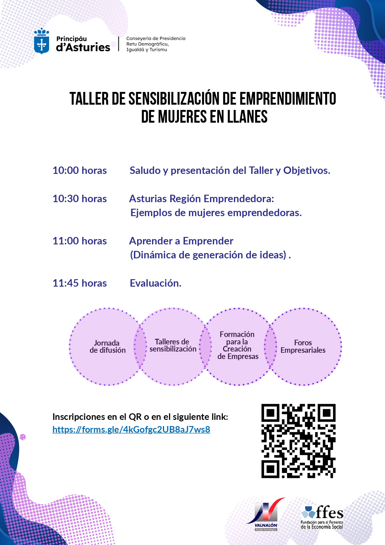 El lunes 23 de febrero, de 10:00 a 12:00 h. en el Centro de Empresas Municipal de Llanes, en La Arquera, se desarrollará un taller de sensibilización de Emprendimiento de Mujeres.
