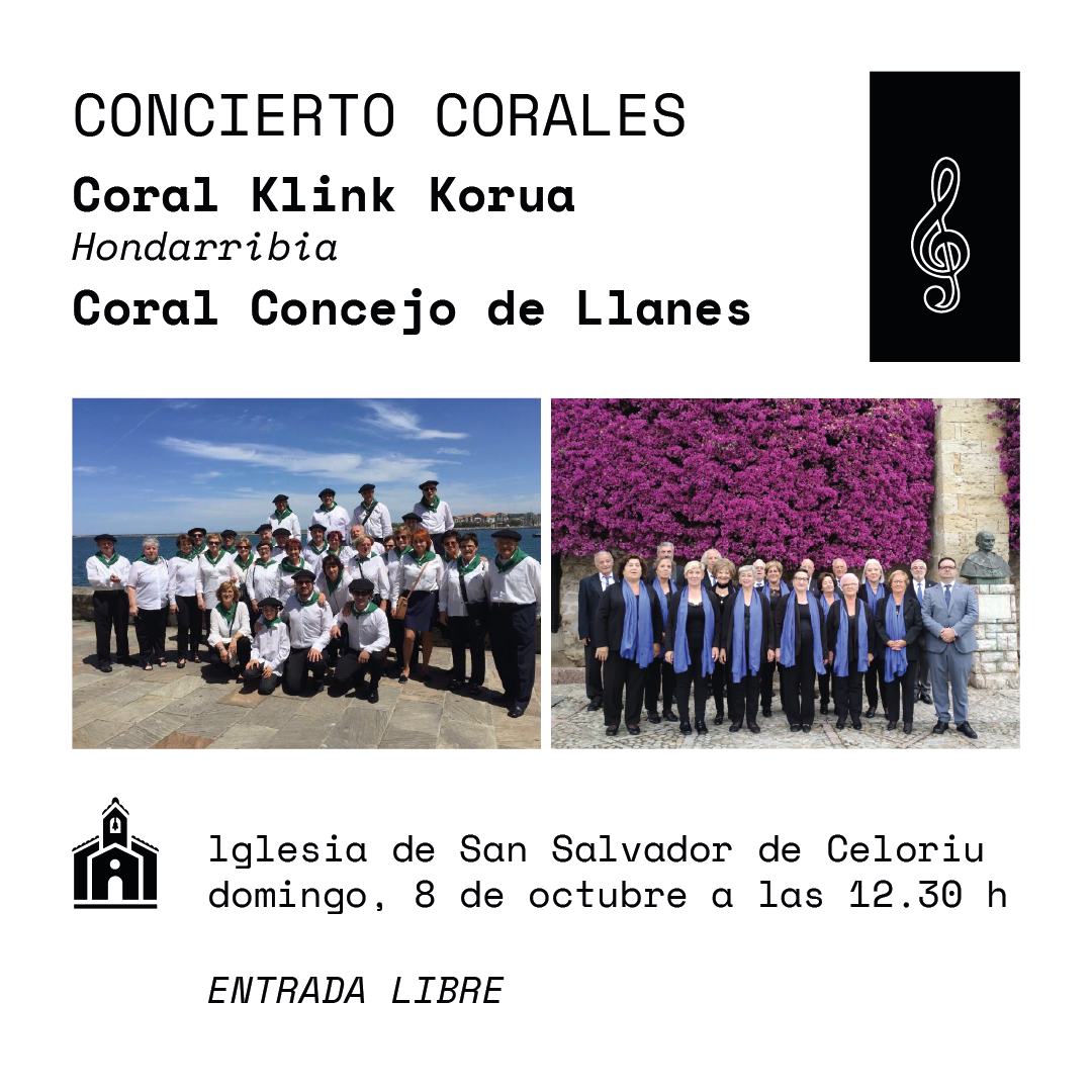 El domingo 8 a las 12.30 h., en la Iglesia de San Salvador de Celoriu, podréis disfrutar de un concierto de la Coral Concejo de Llanes que estará acompañada en esta ocasión de la Coral Klink Korua de Hondarribia.