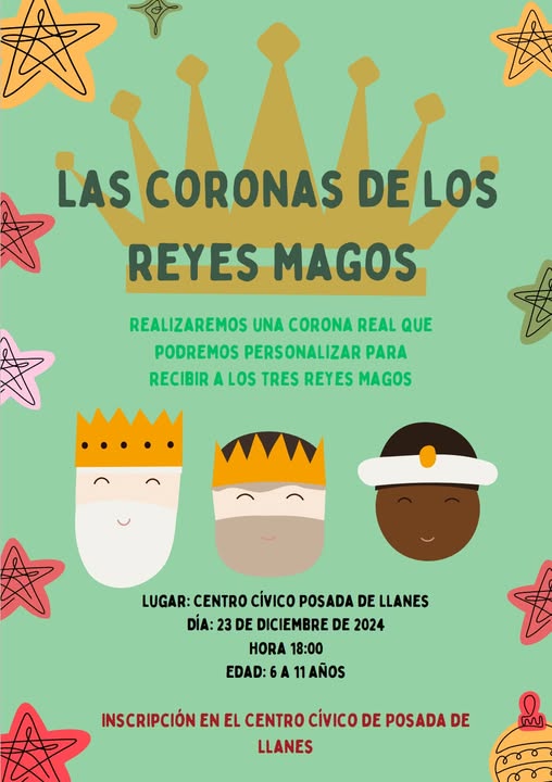 El Centro Cívico de Posada de Llanes ha abierto la inscripción para el taller infantil “Las coronas de los Reyes Magos”, que se desarrollará el lunes 23 de diciembre a partir de las 18:00 horas. En él los niños y niñas participantes confeccionarán una corona real personalizada para recibir a los Reyes Magos.