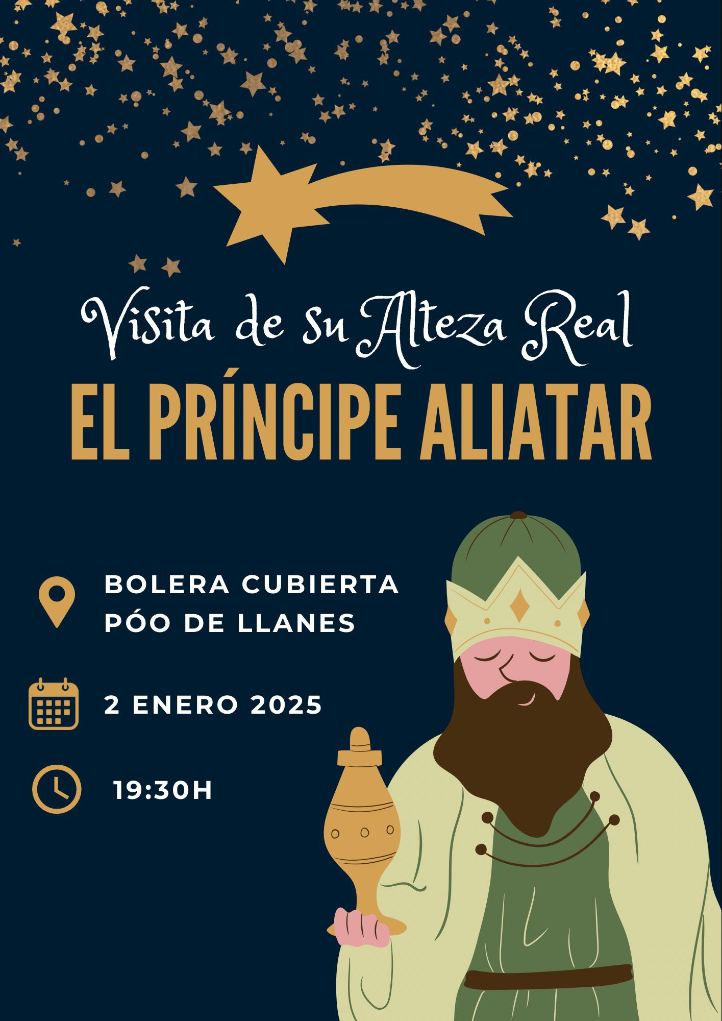 El jueves, 2 de enero, a las 19:30 h. en La Bolera de Cubierta, los niños y niñas de Póo tendrán la oportunidad de darle su carta de SS. MM. Los Reyes Magos de Oriente al mensajero Real Aliatar.