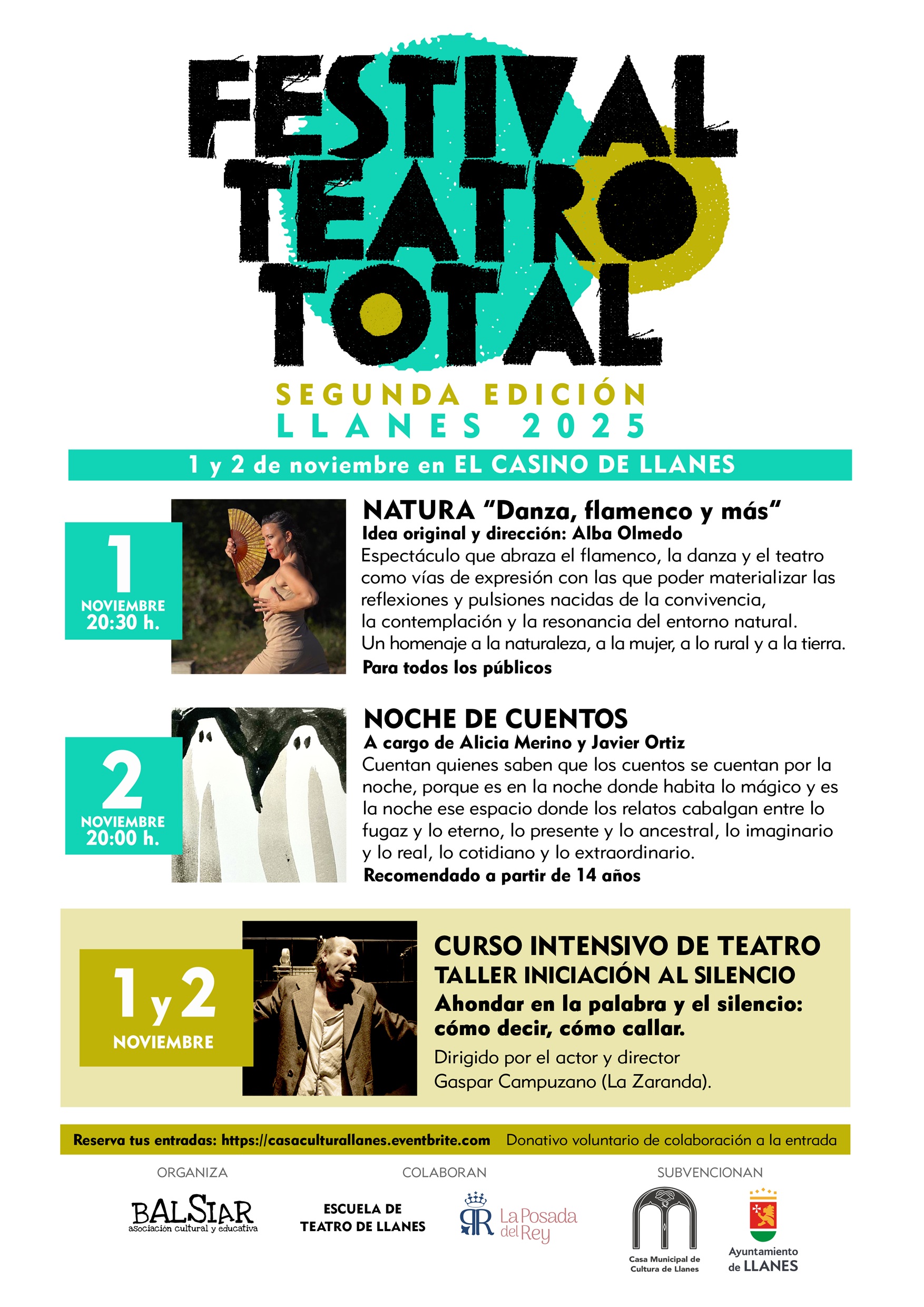 El 1 y 2 de noviembre, el Casino de Llanes ofrece la segunda edición del Festival Teatro Total.