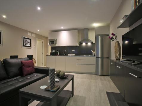 Los apartamentos cuentan también con salón con TV y cocina totalmente equipada.