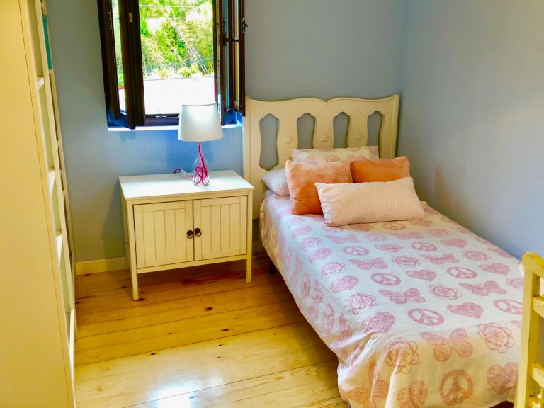 La casa tiene 5 habitaciones (2 matrimoniales, 2 individuales y 1 con literas ), 1 baño, 1 aseo, salón y cocina. En la planta baja se encuentra, el salón, la cocina, el aseo y el jardín con una pequeña barbacoa. En la primera planta, se encuentra 1 habitación matrimonial, 1 habitación con literas y un baño. La segunda planta dispone de una habitación con cama matrimonial con corredor y 2 habitaciones individuales.