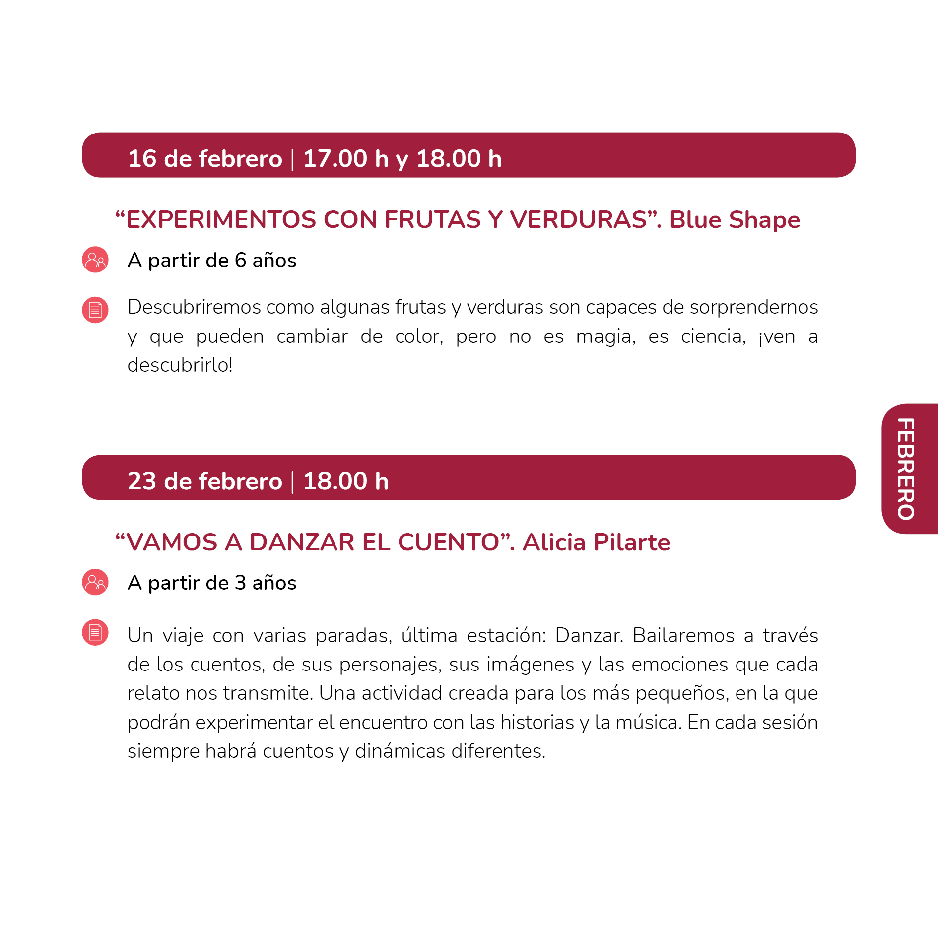 Un viaje con varias paradas, última estación: Danzar. Bailaremos a través de los cuentos, de sus personajes, sus imágenes y las emociones que cada relato nos transmite. Una actividad creada para los más pequeños, en la que podrán experimentar el encuentro con las historias y la música. En cada sesión siempre habrá cuentos y dinámicas diferentes.