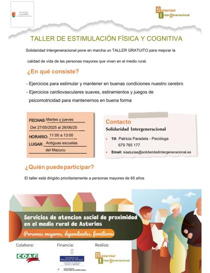 Inscripciones en el teléfono 679 765 177 o en el correo electrónico: siasturias@solidaridadintergeneracional.es