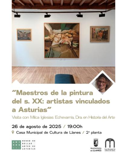 La visita estará a cargo de Milca Iglesias Echevarría, doctora en Historia del Arte, investigadora, profesora en Educación Secundaria y en la UNED, especialista en arte moderno asturiano y miembro de la junta directiva de la Asociación de Amigos del Museo de Bellas Artes de Asturias.